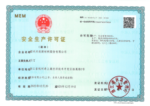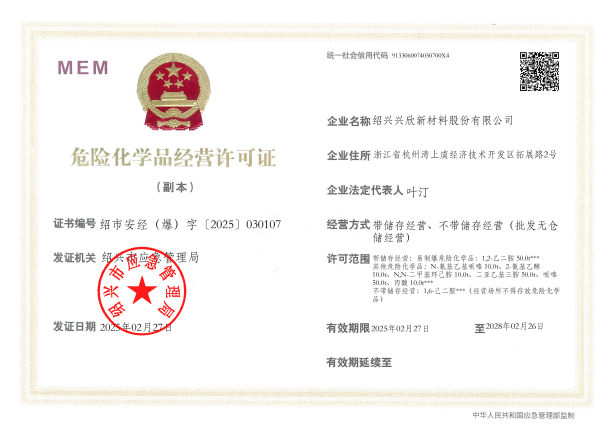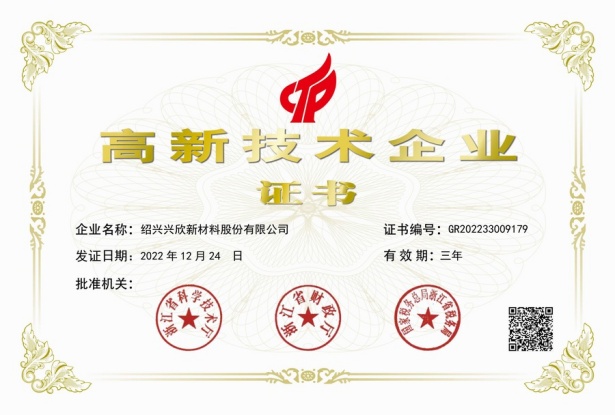 紹興興欣新材料股份有限公司成立于2002年06月27日,占地面積122畝,位于杭州灣上虞經(jīng)濟(jì)技術(shù)開發(fā)區(qū)拓展路2號(hào),現(xiàn)有職工200余人,專業(yè)技術(shù)人員50余人;博士、碩士研究生30余人組成的一支知識(shí)型、專業(yè)化的技術(shù)科研團(tuán)隊(duì)。公司面向全球市場(chǎng),專業(yè)開發(fā)電子化學(xué)品、環(huán)?;瘜W(xué)品、醫(yī)藥中間體、高分子材料等先進(jìn)新材料重點(diǎn)領(lǐng)域的省級(jí)科技型企業(yè);建有浙江上虞、安徽東至兩個(gè)生產(chǎn)基地。目前為“國家高新技術(shù)企業(yè)”、浙江省“隱形冠軍”企業(yè)、浙江省專精特新中小企業(yè);建有“省級(jí)”研究開發(fā)中心,共建天津大學(xué)浙江紹興研究院電子化學(xué)品研發(fā)中心。